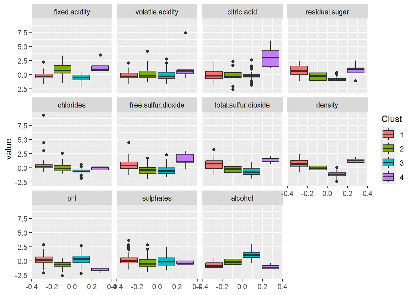 In this exercise, we’ll use the same wine data introduced in the ensemble exercises. As noted before, all the numerical features have units. Additionally, the original objective of this dataset was to predict the wine quality from the other features (supervised learning). The data will only be used for unsupervised task here.