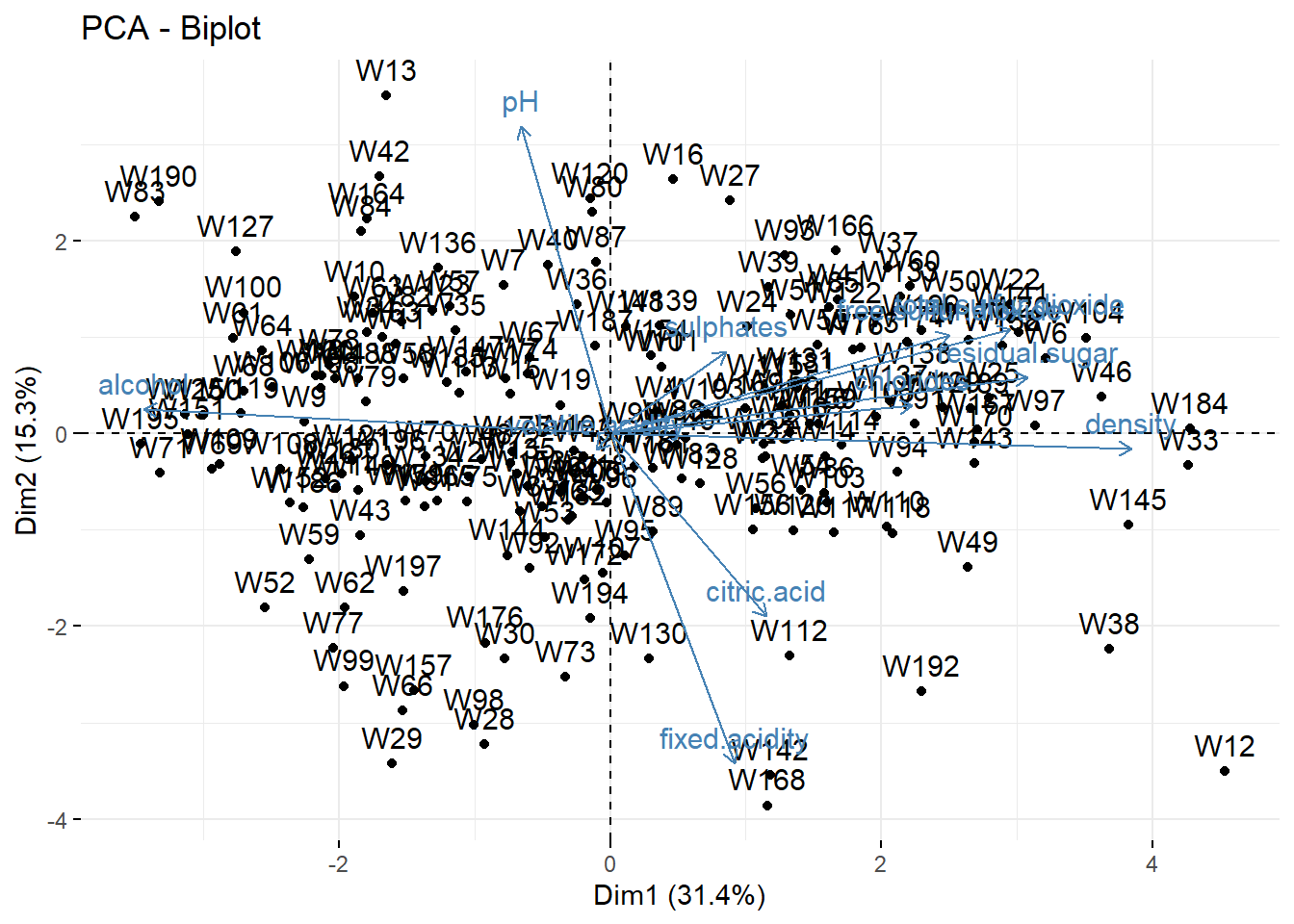p1 <- fviz_pca_biplot(wine_pca, axes = 1:2)