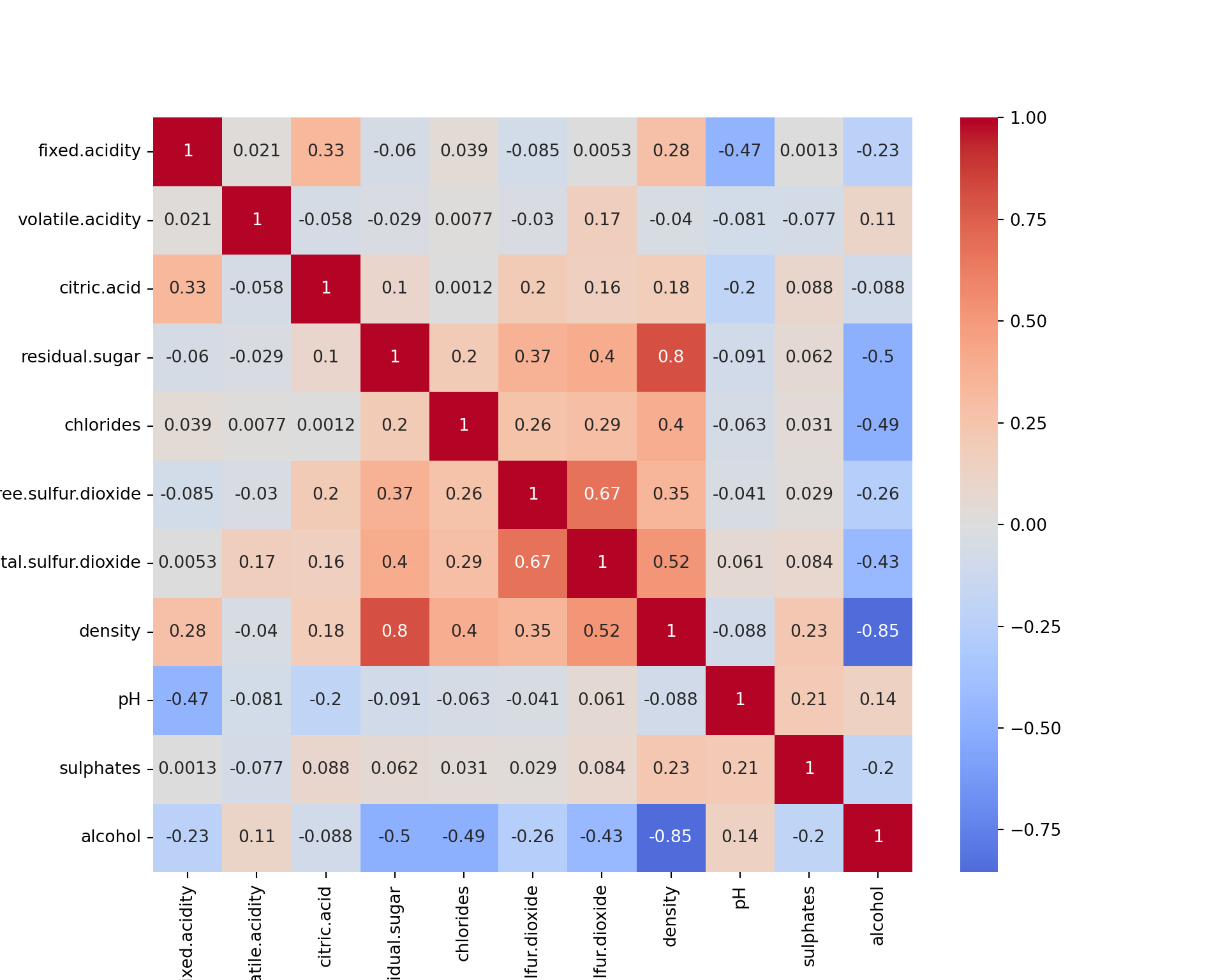 We see that some features are (negatively or positively) correlated, like alcohol and density. This means that they bring to some extend the same information to the data. They could thus be combined in a single feature. This is in fact what PCA is doing.